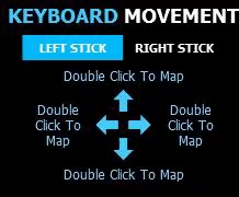 手把上控制方向移動的大都是左搖頭或右搖頭, 玩家也可以設定搖頭方向來對應到鍵盤滑鼠上. 類似上述按鍵對應的設定方式, 在Keyboard Movement的設定介面裏, 先用滑鼠點選您要設定的是左搖頭(LEFT STICK)或是右搖頭(RIGHT STICK), 然後如下圖, 點選每個方向, 出現"Listening"時再按您要對應的鍵盤按鍵.