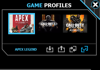 每款遊戲都有自己合適的鍵盤滑鼠參數設定. Zen Studio軟體的鍵盤滑鼠設定工具(Mouse and Keyboard Plugin) 已有內建多款遊戲的遊戲設定檔供玩家下載使用, 您可以再針對這些設定檔進行優化來符合您的使用習慣, 也可以把您的優化過的設定檔儲存起來並分享到論壇. 請參考下圖介面右上方即為遊戲設定檔, 當然玩家也可以自己建立自己的遊戲設定檔.